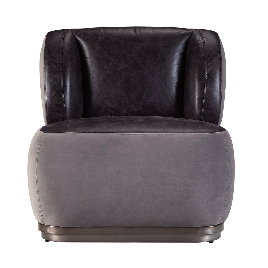 • Top Grain Leather, Nailhead Trim, Patchwork Aluminum Frame, Bucket Shape Seat