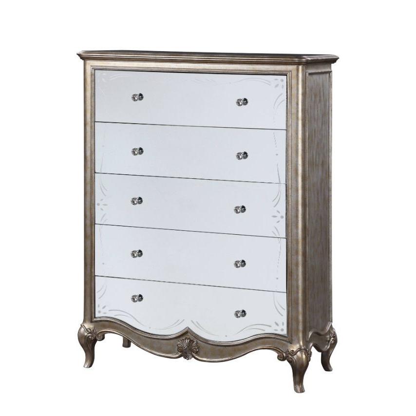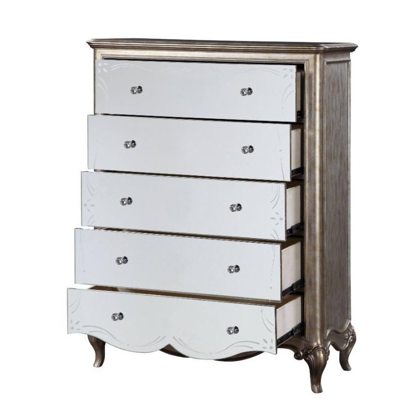 • Drawer: Mirrored Fronts, Glide) Side Metal (Full Ext.), Dovetail) English Front & Back, Felt Lined) Top Drawer, Safety Stop Included, Manual-Close, Hardware: Single Crystal-like Pull-Knob