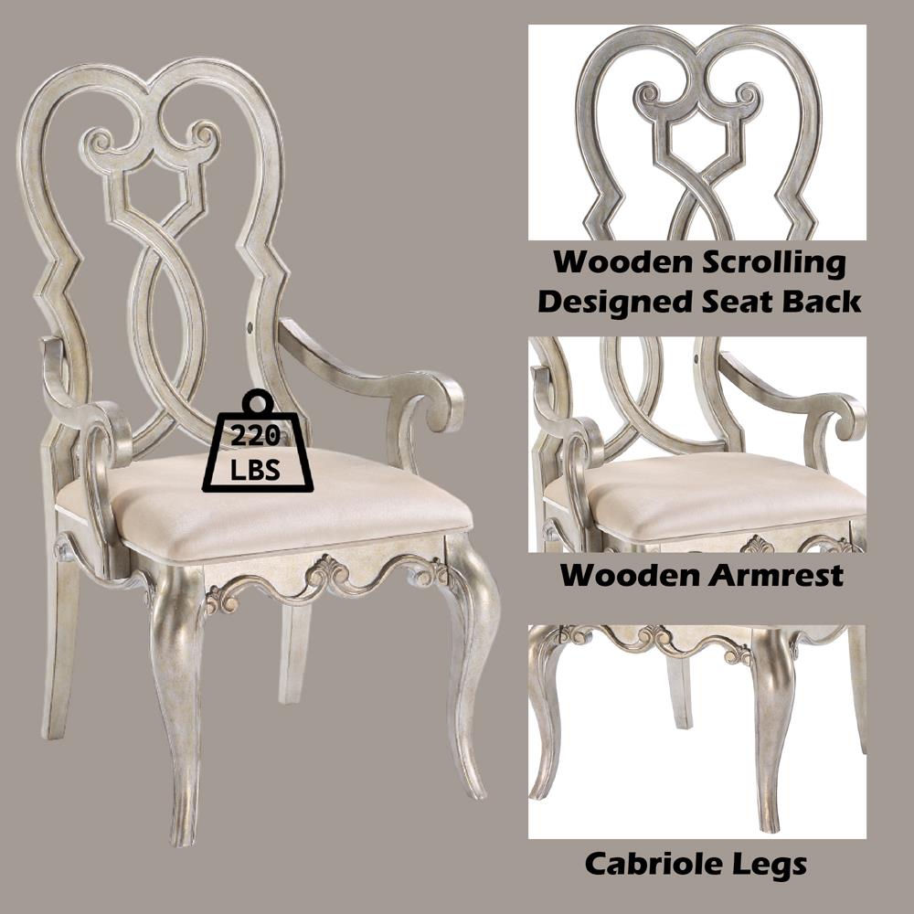 Every piece in the Esteban dining collection reflects vintage glam style! Gorgeous details such as raised scroll trim and crystal... Every piece in the Esteban dining collection reflects vintage glam style! Gorgeous details such as raised scroll trim and crystal handles with mirrored fronts on the case pieces transform the entire collection into something extraordinary. The antique champagne finish and the mirror inlayed on the table top elevates this set to the height of luxury. View more