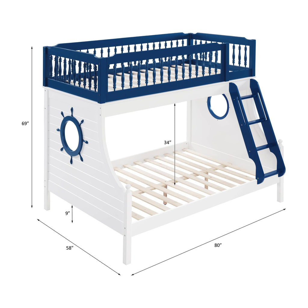 • Wooden Frame, Baluster Style Guardrail (Top Bed), Beadboard Panels
