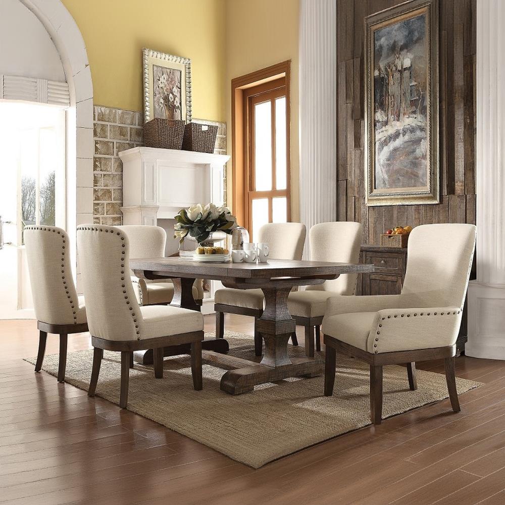 Beige Linen & Salvage Brown Finish