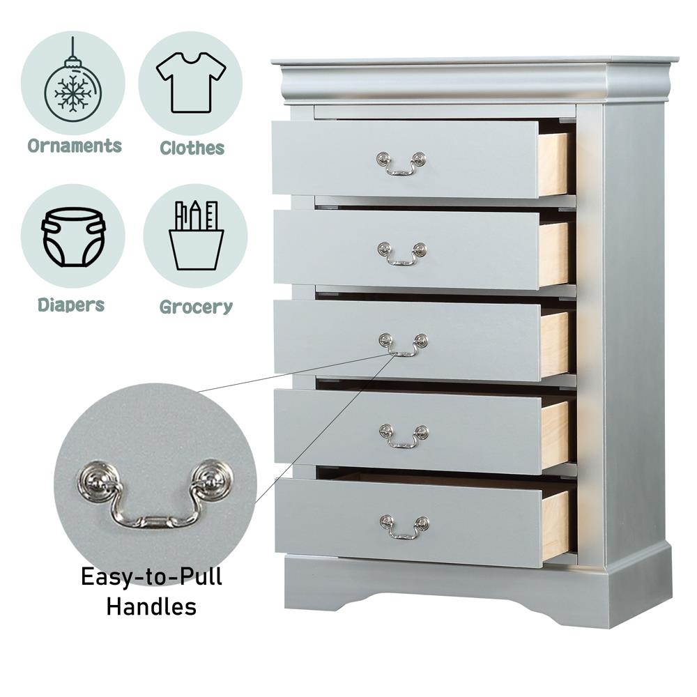 • Drawer: GLIDE Center Metal (Kenlin, 2/3 Ext), Dovetail French Back Only, Hdw: Nickel Metal Handle