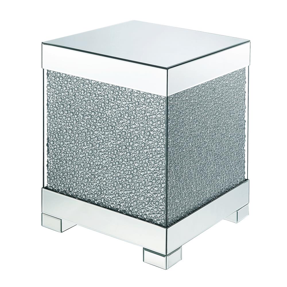 • Features: Mirrored Top, Base w/Faux Crystals & Clear Glass