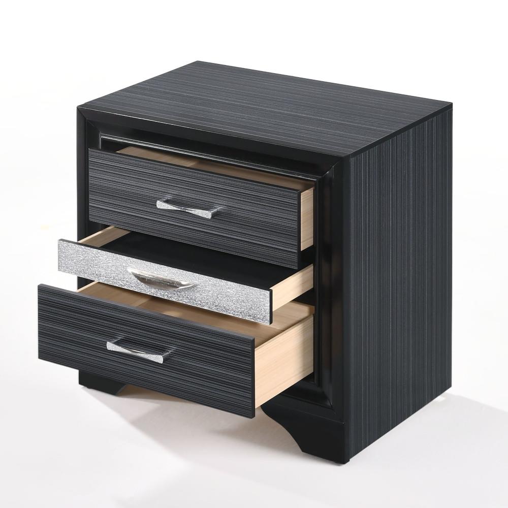• Textured Surface: The exterior of the nightstand features a textured surface, adding depth and interest to its appearance.