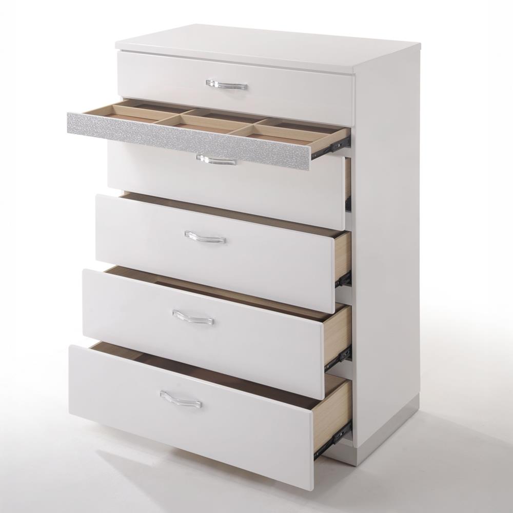 • 5 Drawer& 1 Hidden Jewelry Drawer (Sparkling Front, Felt Lined & Dividers)
