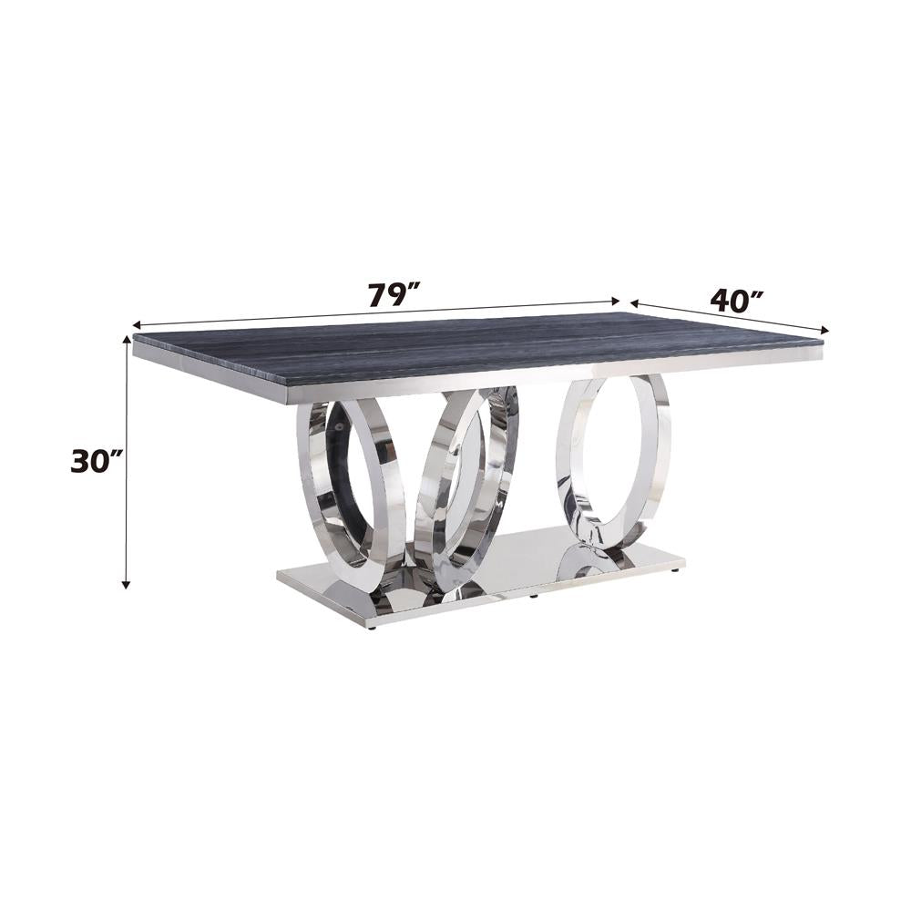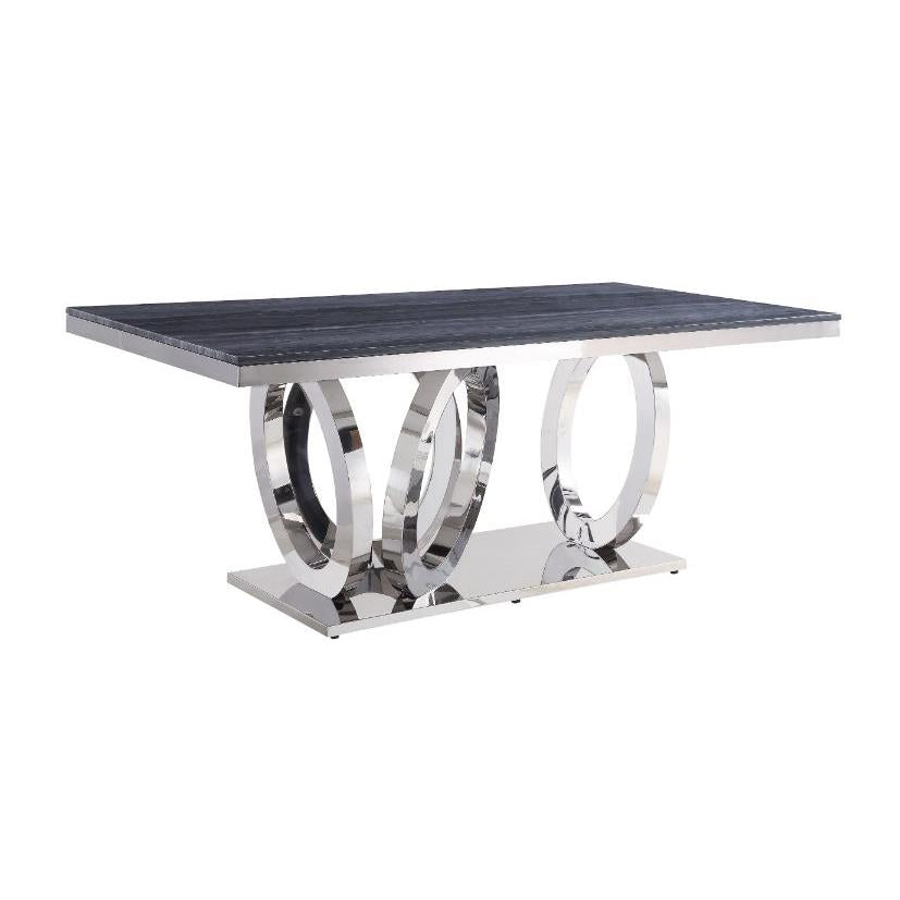 Grey Printed Faux Marble Top & Mirrored Silver Finish