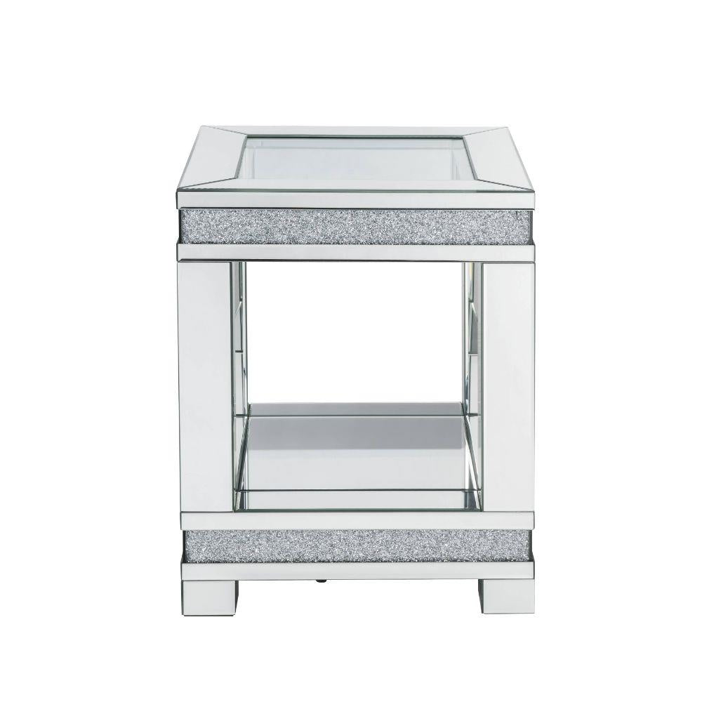 • Square Leg with Faux Diamond Inlay & Tempered Clear Glass
