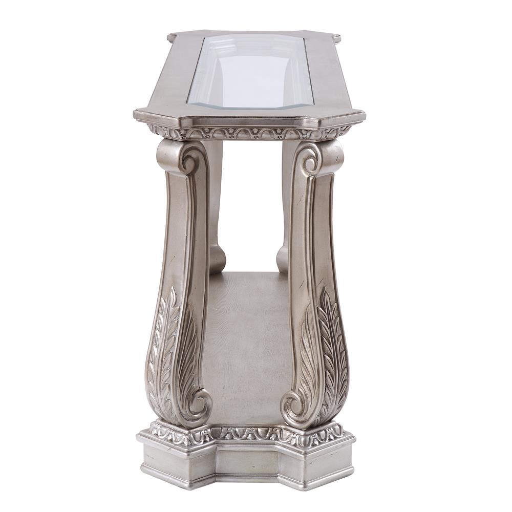 • Wood Floral-Scrolled Leg & Base-Shelf: Poly-Resin