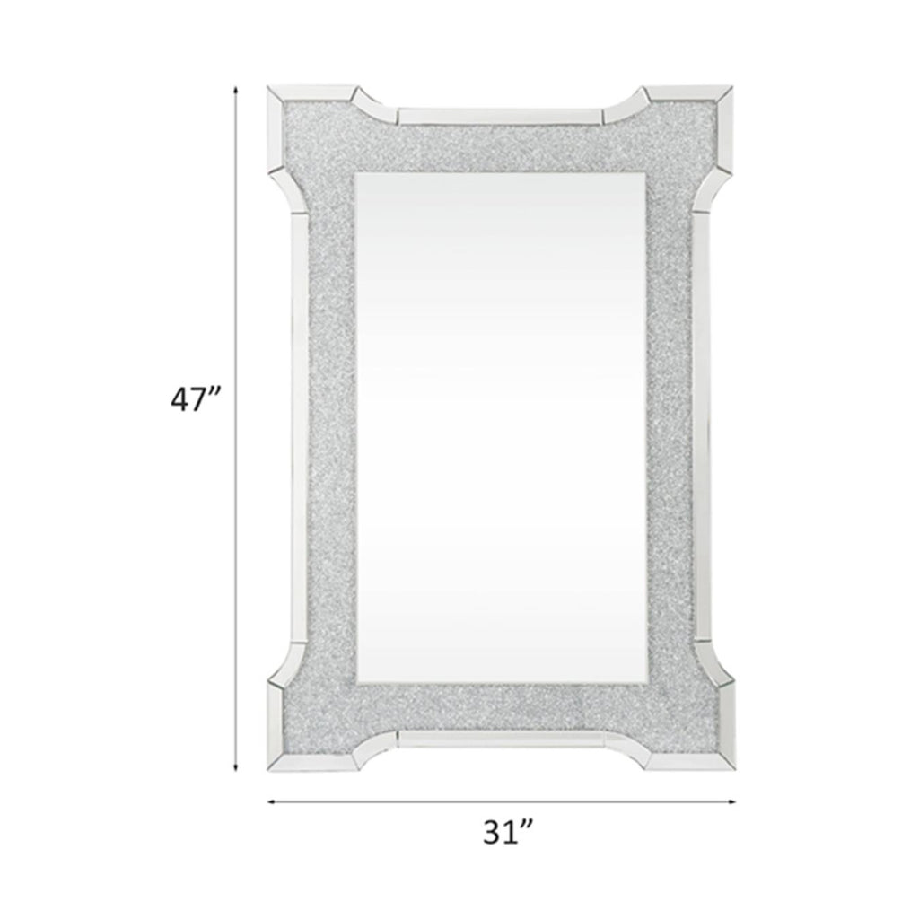 The Nowles mirror offers function and style to any modern setting. This rectangular wall mirror features beveled mirrored border trim with faux diamonds inlay that glimmer and glitter in the available light. Its frame crafted from durable engineered wood. The perfect complement for any glam style that naturally attracts the eye.
