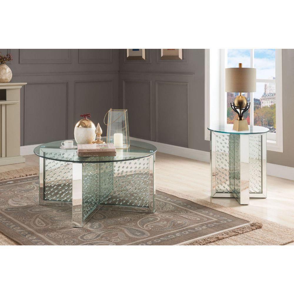 • Glass Top & Mirrored Finish: Beveled with Faux Crystal Inlay