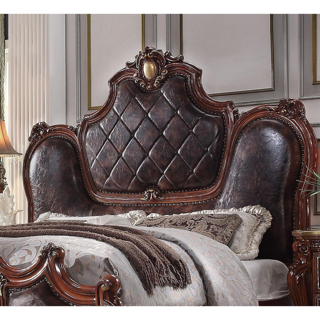 • Features: Padded Headboard/Footboard, Raised Scrolled-Oversized Molding Trim, Button Tufted Panels (Side), Nailhead Trim, Antique Contrast Finish