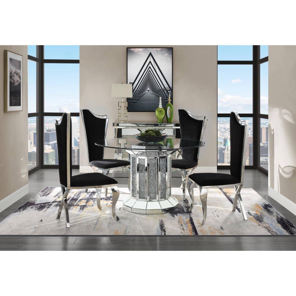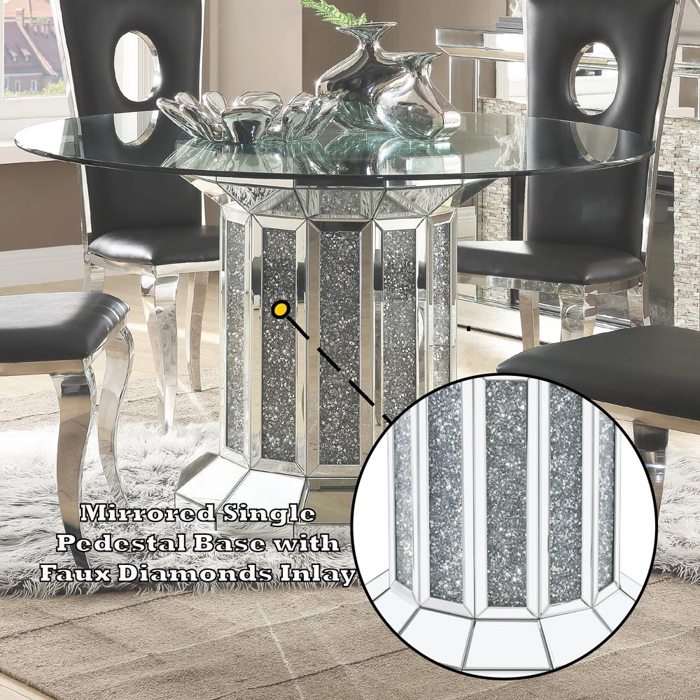 • Mirrored Single Pedestal Base with Faux Diamonds Inlay