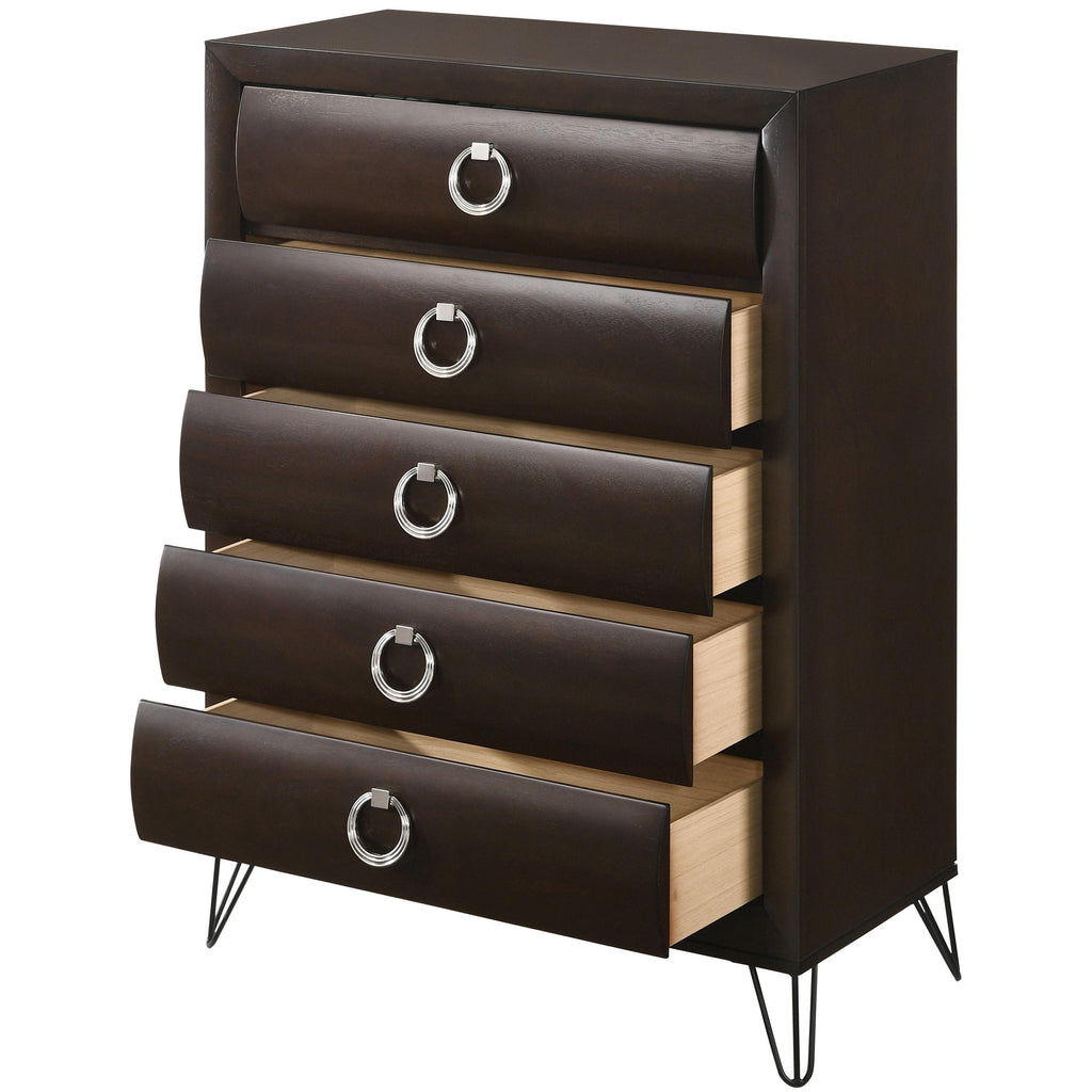 • Drawer: Curved Fronts, GLIDE Center Metal (Kenlin), DOVETAIL English Front & Back, Felt Lined Top Drawer ONLY, Safety Stop Included, Manual/Self-Close, Hardware: Single Pull Ring, Stainless Steel