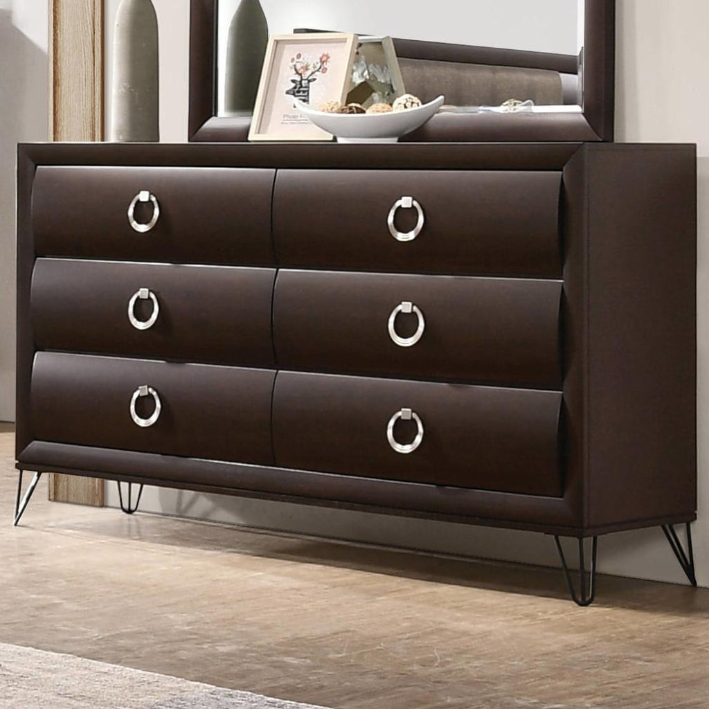 • Drawer: Curved Fronts, GLIDE Center Metal (Kenlin), DOVETAIL English Front & Back, Felt Lined Top Drawer ONLY, Safety Stop Included, Manual/Self-Close, Hardware: Single Pull Ring, Stainless Steel