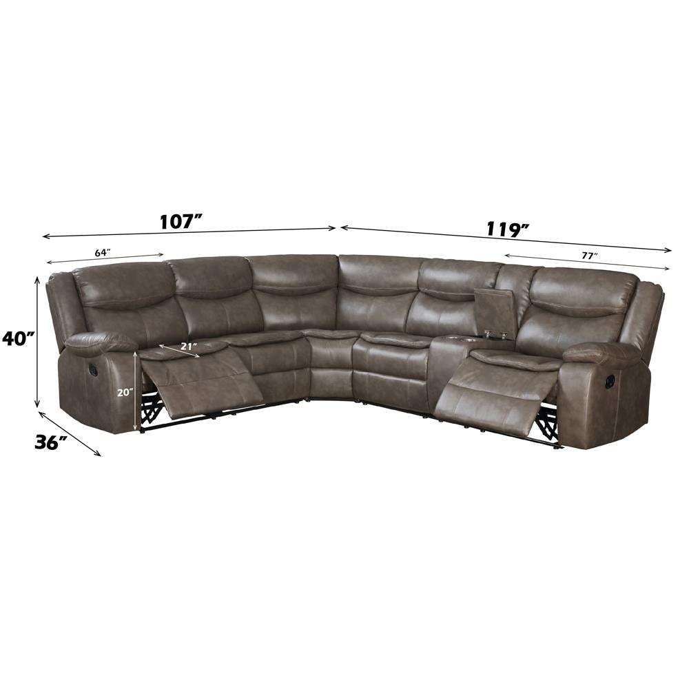 • Includes: 2 Reclining Seats (Motion LAF/RAF Recliner Chairs), 3 Stationary Seats (Armless Chairs, Curved Wedge), Console w/Storage & Cup-Holder (Safety Hinge)
