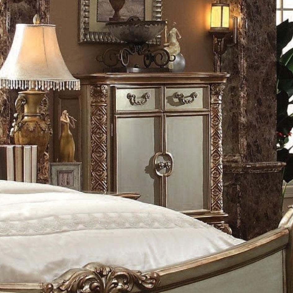 • Oversized Scrolled Leg, Scrolled Base w/Raised Molding Trim (Poly Resin), Antique Contrast Finish