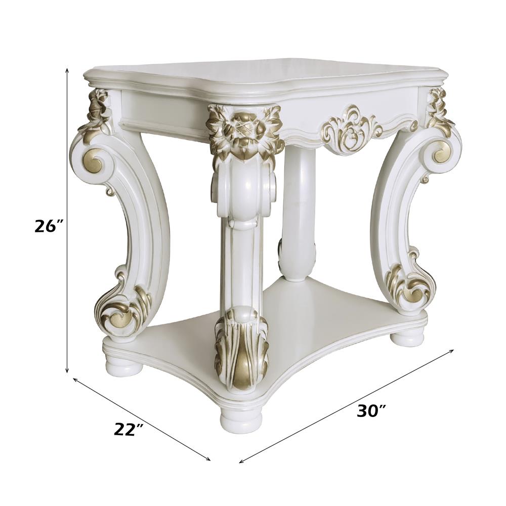 • KD, Rectangular Table w/Scrolled Leg and Bottom Shelf
