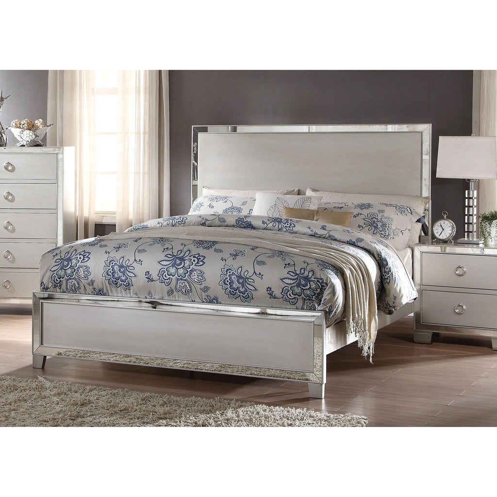 • Panel Bed: Wooden Headboard, Mirrored Trim Inlay
