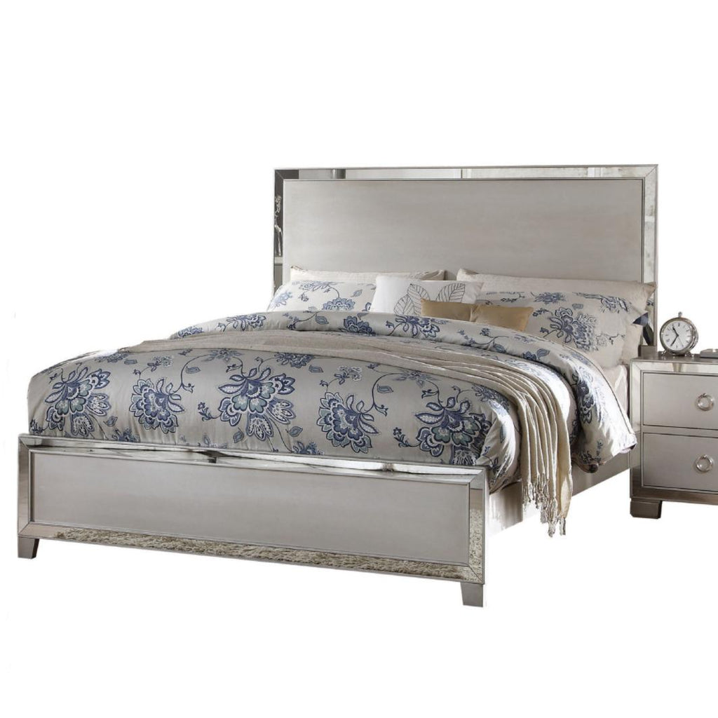 • Panel Bed: Wooden Headboard, Mirrored Trim Inlay