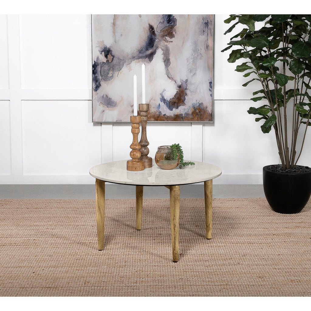 Coaster Furniture Aldis 703717 Round Marble Top Side End Table - White and Natural