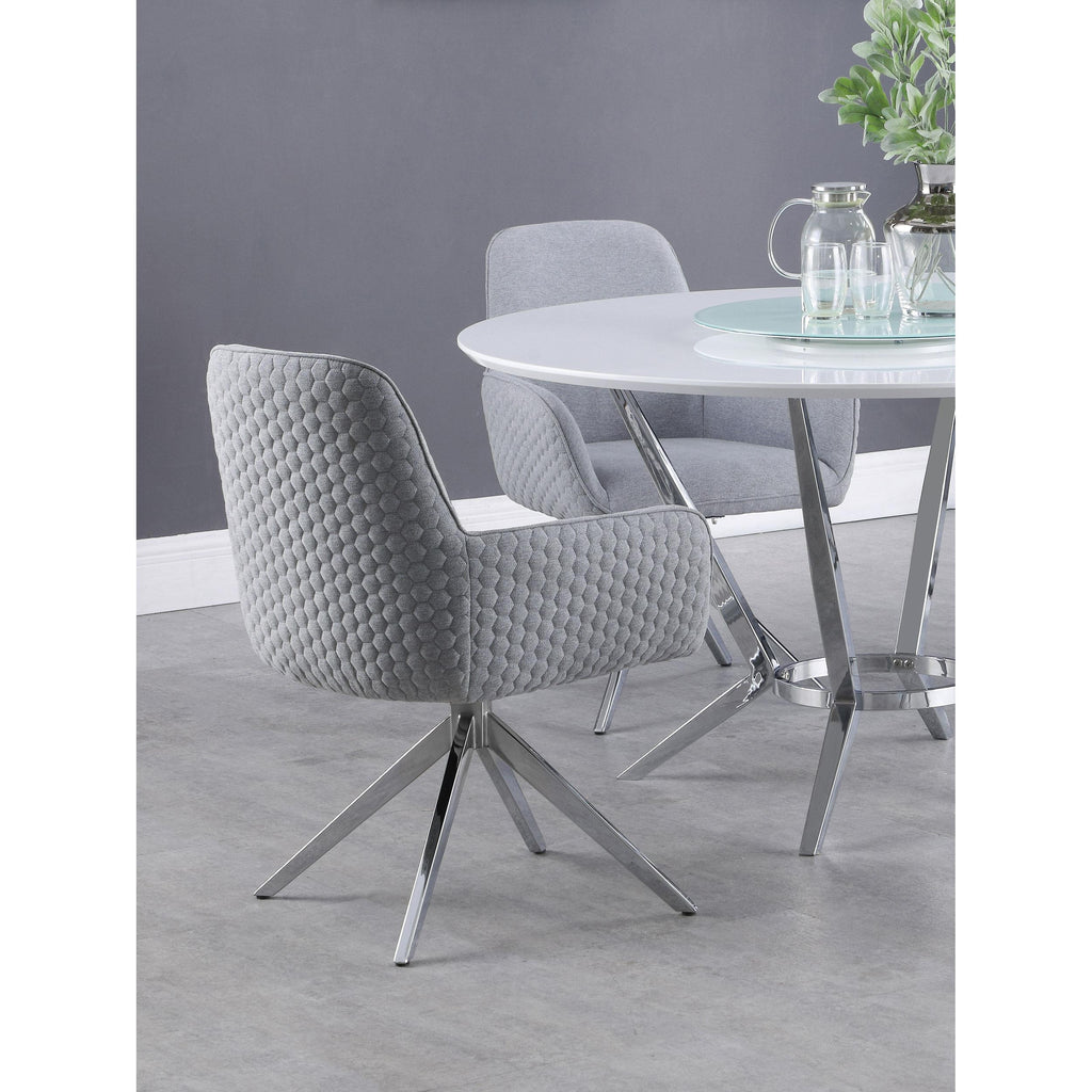 • Chairs have low arms, 360 degrees swivel base , wide seating, and are accented with grey honeycomb quilted fabric