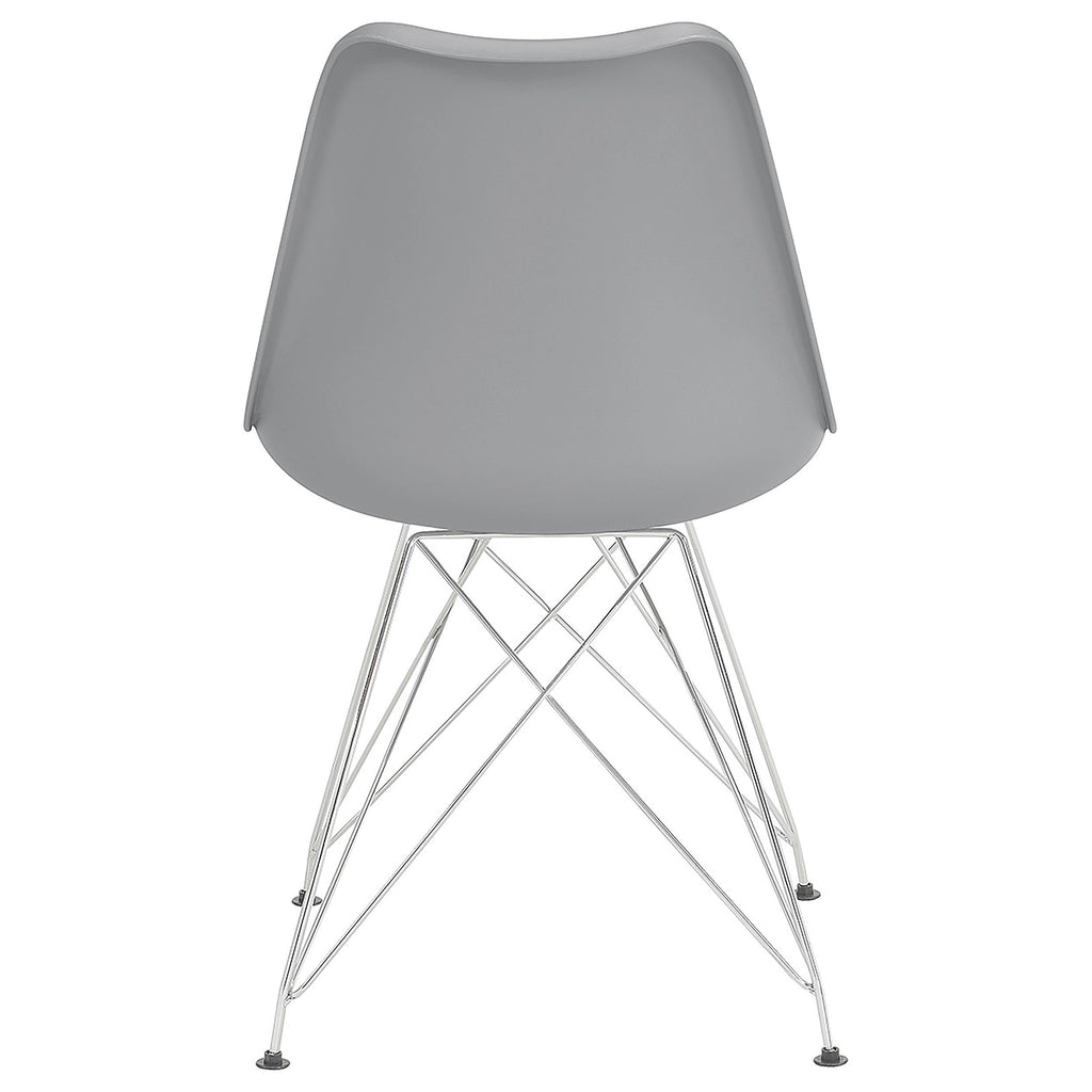 • Chrome electroplated metal Eiffel-style legs add modern angular design and stability