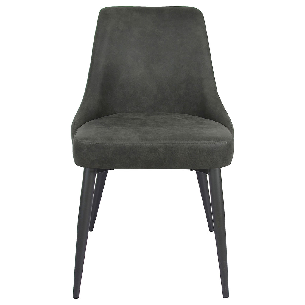• Upholstered curved back dining chairs with unique tufting in the back offered in grey coated microfiber cover