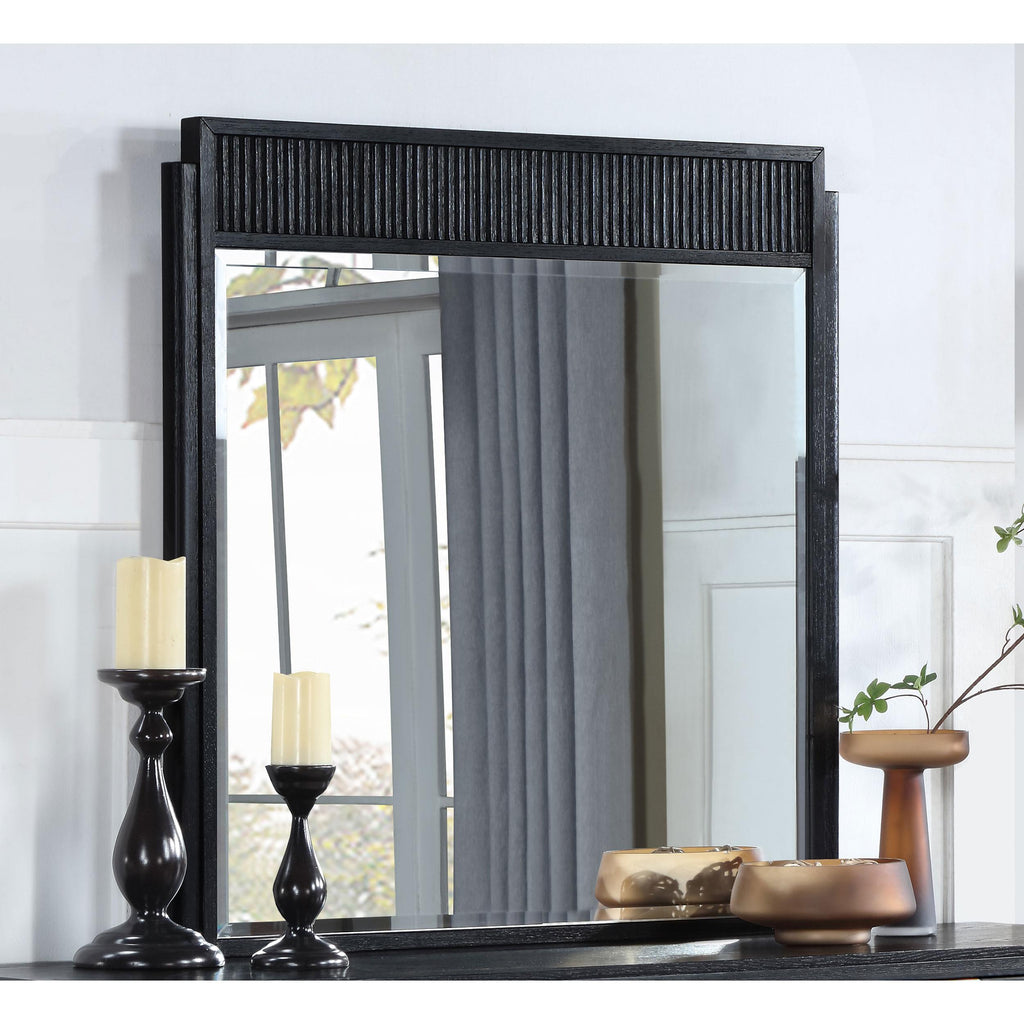 • Fluted textured panel highlights the top of the mirror's frame to add texture and depth