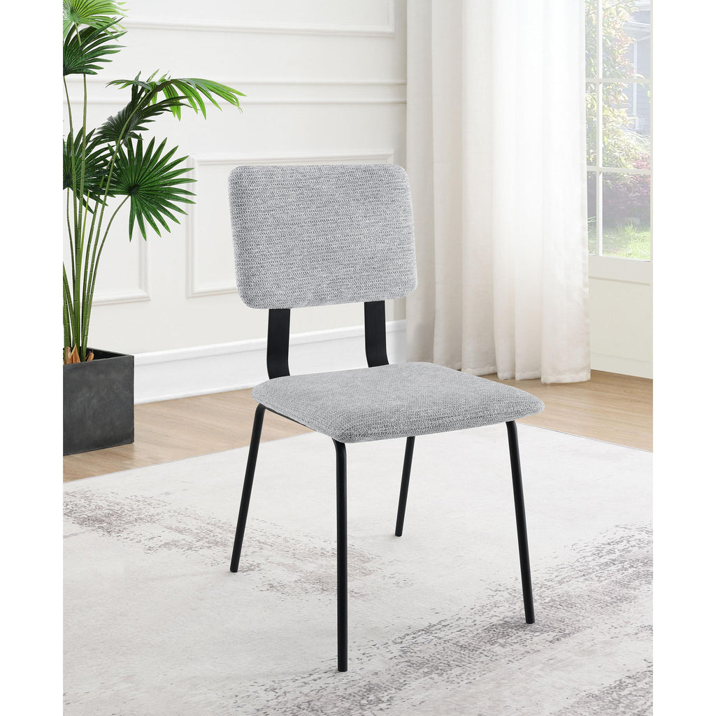 • Slim lines create a streamlined effect for a set of two modern dining chairs