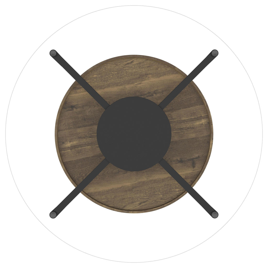 • Coffee table features an X-cross frame beneath a round tempered glass top