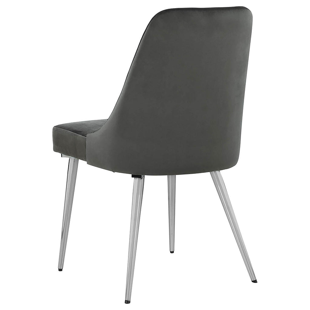 • Upholstered in loden tone fabric, chairs feature curved backs that are elegant and comfortable