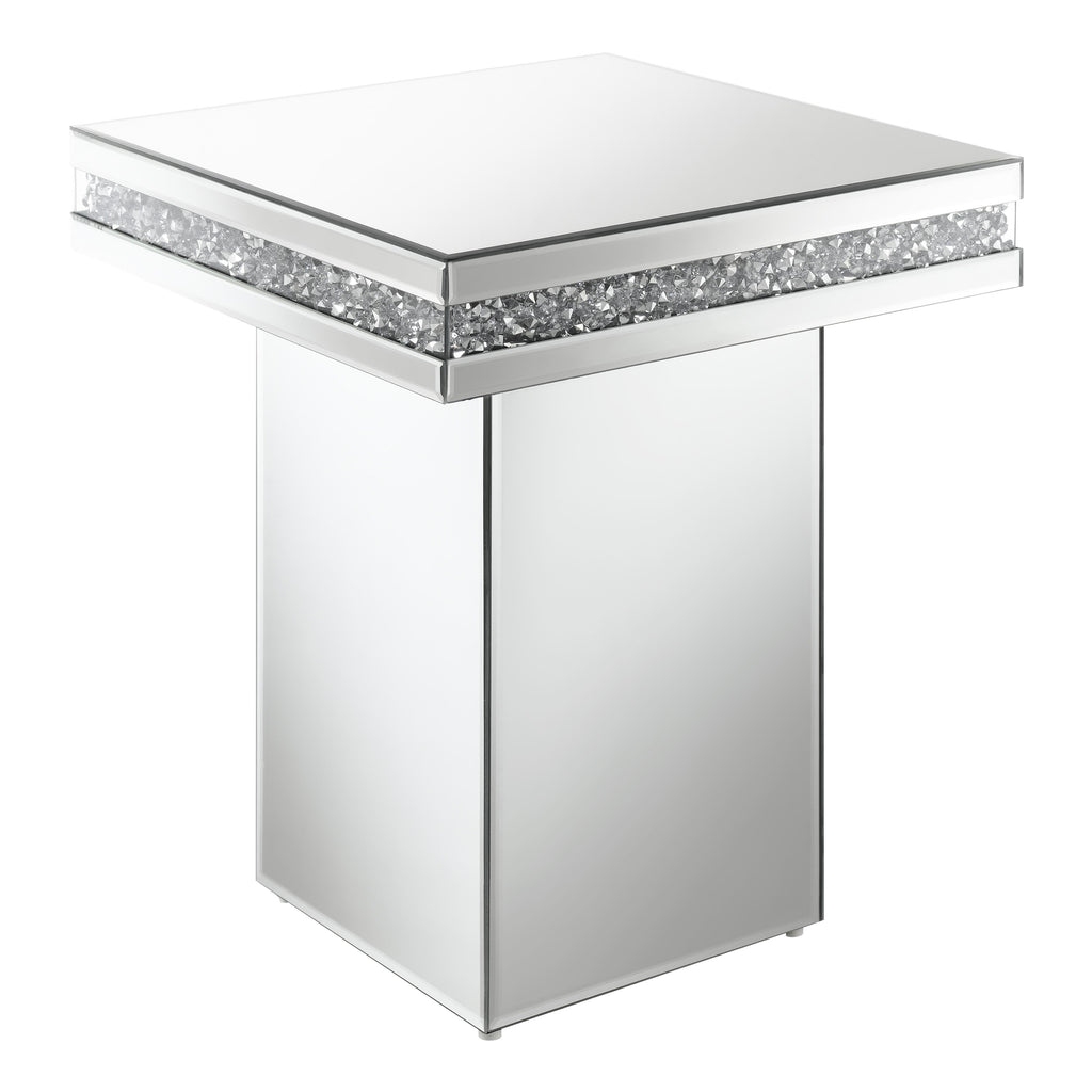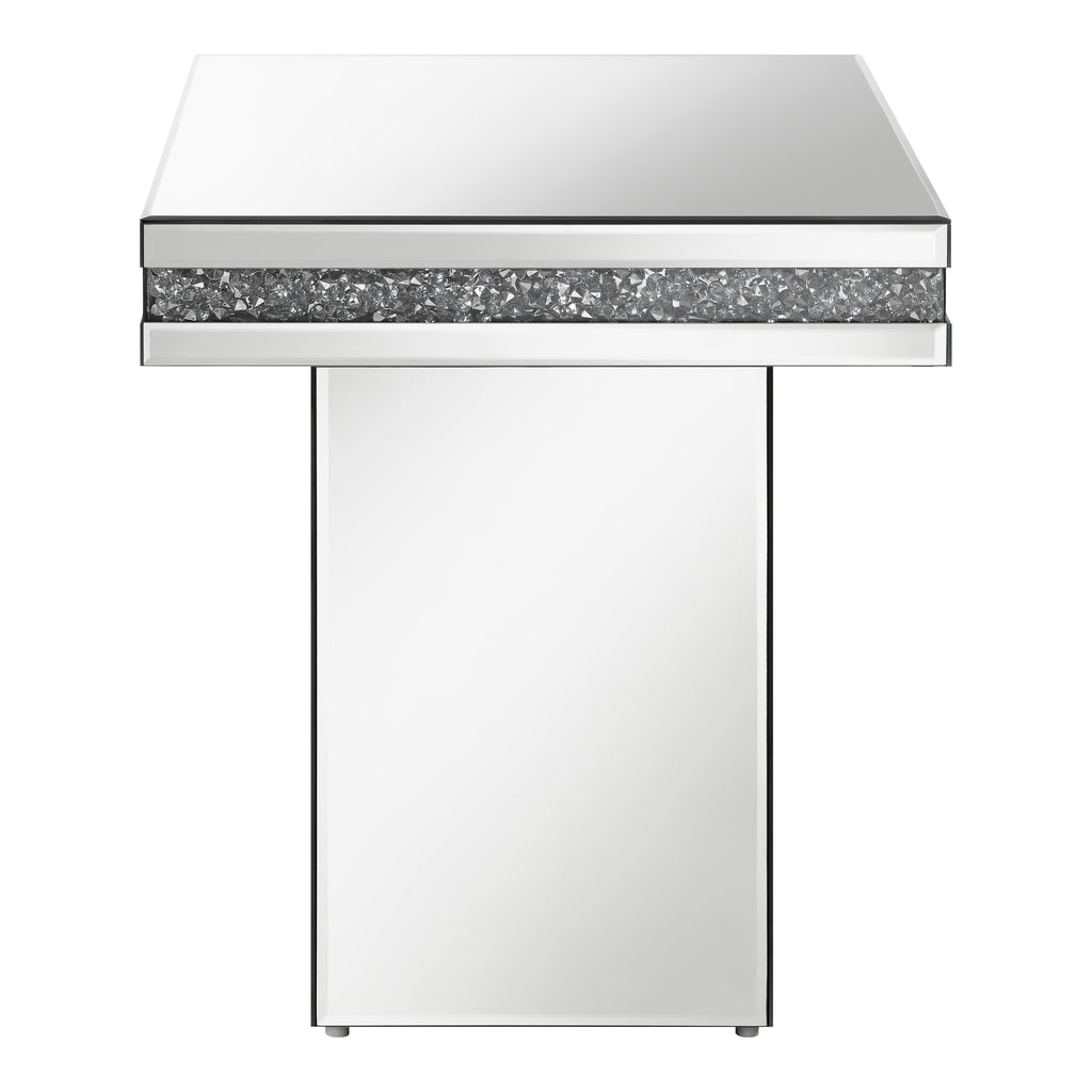 • Mirror tile trim encompasses the surface for a highly reflective frame