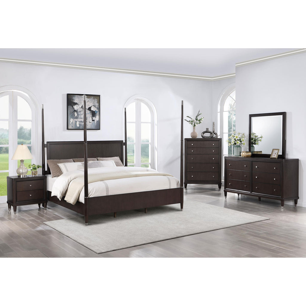 • Rich brown wood finish creates a neutral, sophisticated for a stylish bedroom ambiance