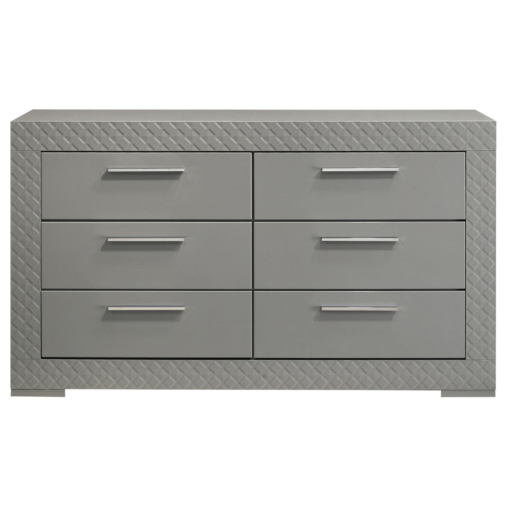 Coaster Furniture Ives 224973M 6-Drawer Dresser and Mirror - Grey High Gloss