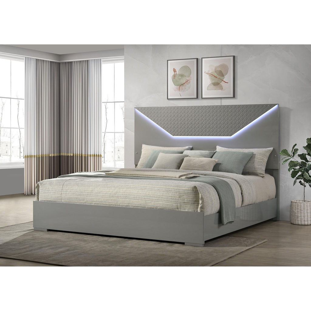 Coaster Furniture Ives 224971Q Queen Panel Bed LED Headboard - Grey High Gloss