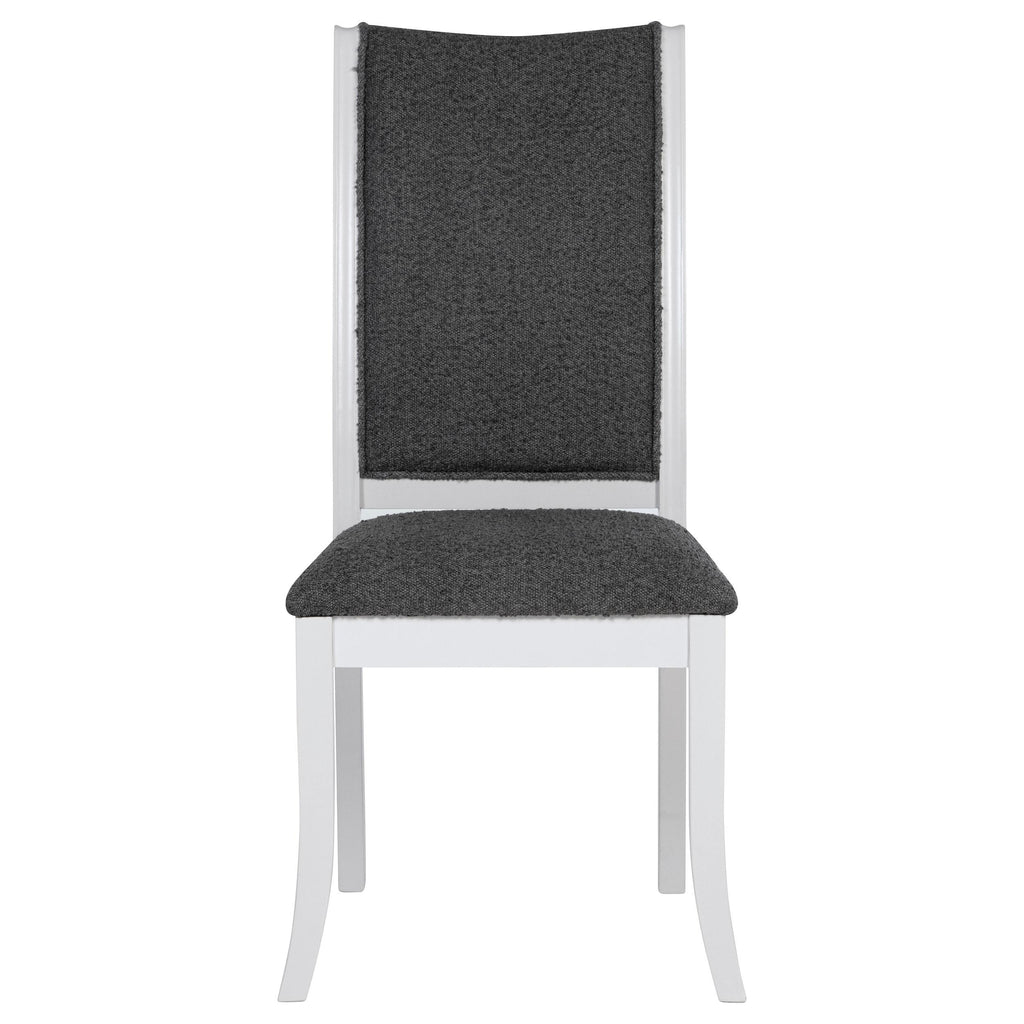 • Flared, tapered front legs with a square profile add visual interest to each chair