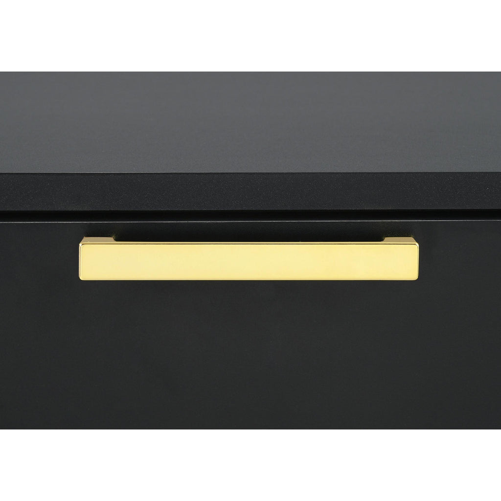 • Smooth black finish with sleek gold pull handles for a striking contrast