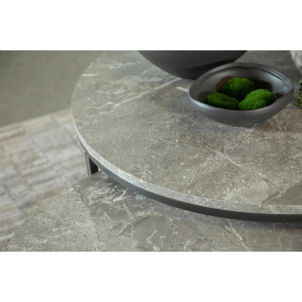 • Nesting coffee table set features two round tables for versatile use and compact spaces