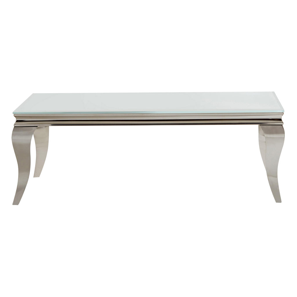 • Coffee table with a white tempered beveled glass top for sleek appeal