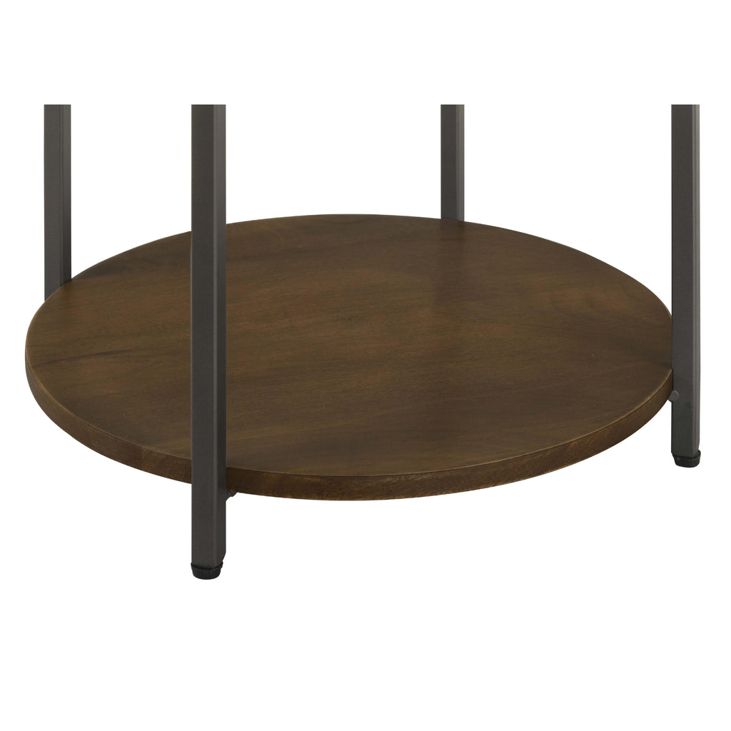 • Side table with a round, genuine brown marble top featuring elegant veining