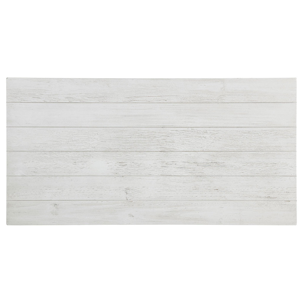 • Distressed white finish imparts a cozy, rustic flair to your décor scheme