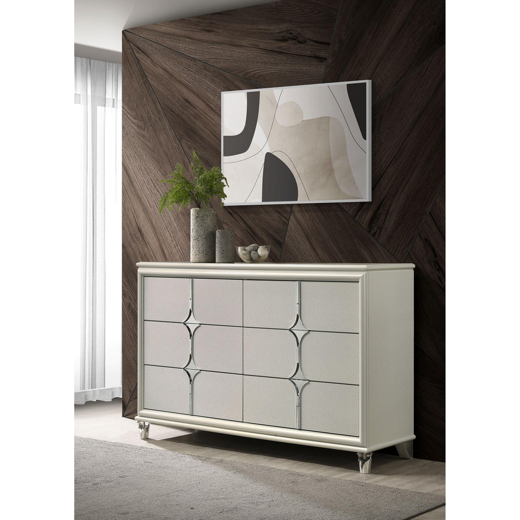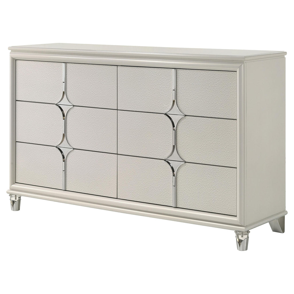 Coaster Furniture Olivia 224953M 6-Drawer Dresser and LED Mirror - Pearl White