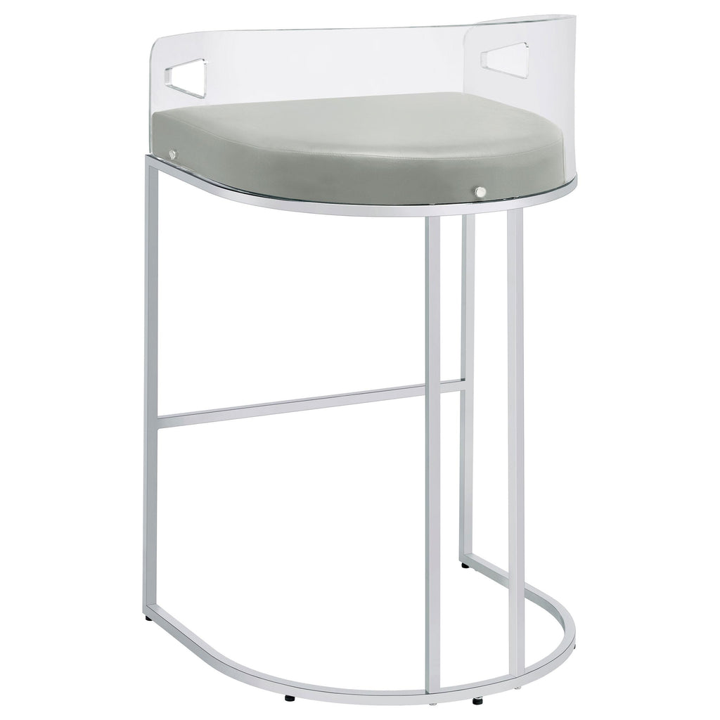 • Ultra-modern with a retro-inspired vibe, these stools feature a curved backrest in clear acrylic and leatherette cushion for comfort