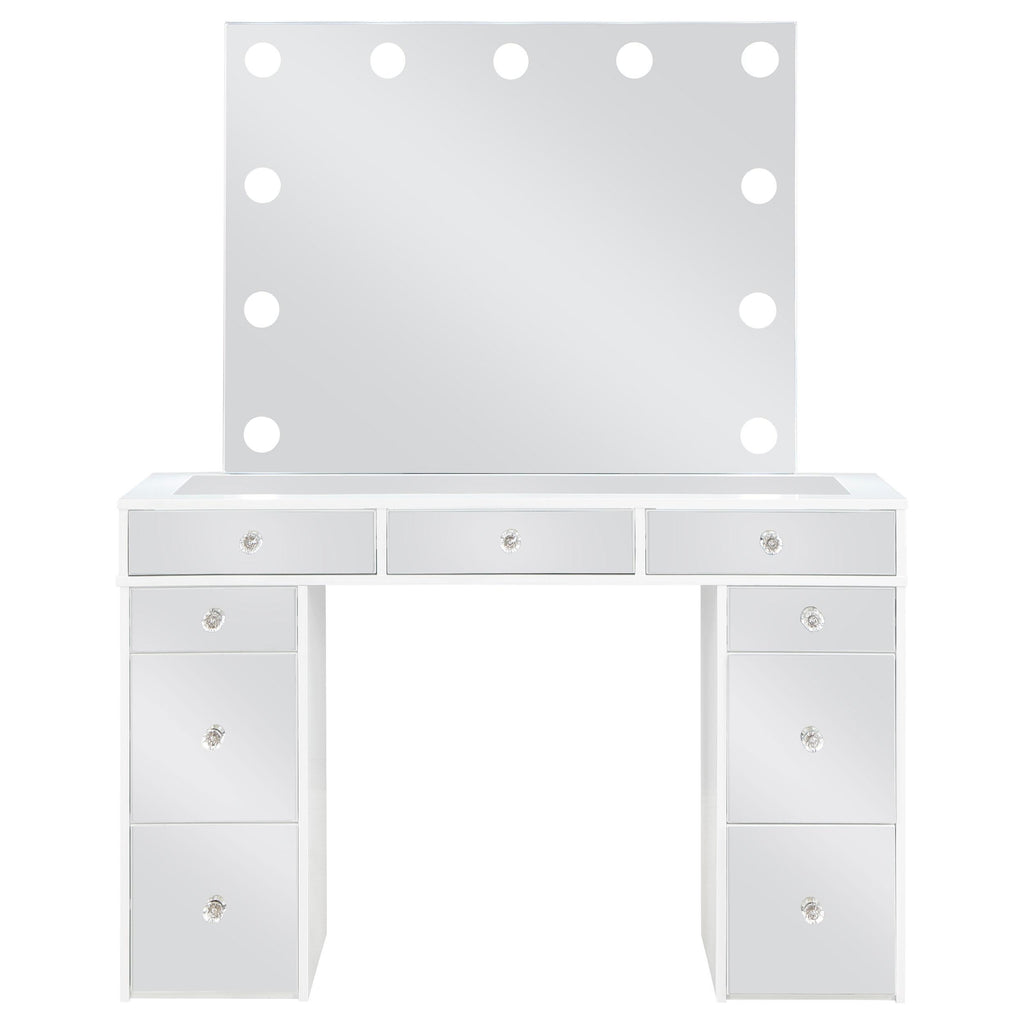 • Three-piece white finish vanity set, perfect for a modern bedroom setup