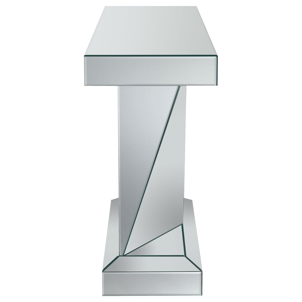 • Mirrored console table with a bold geometric design and acrylic crystal inlay