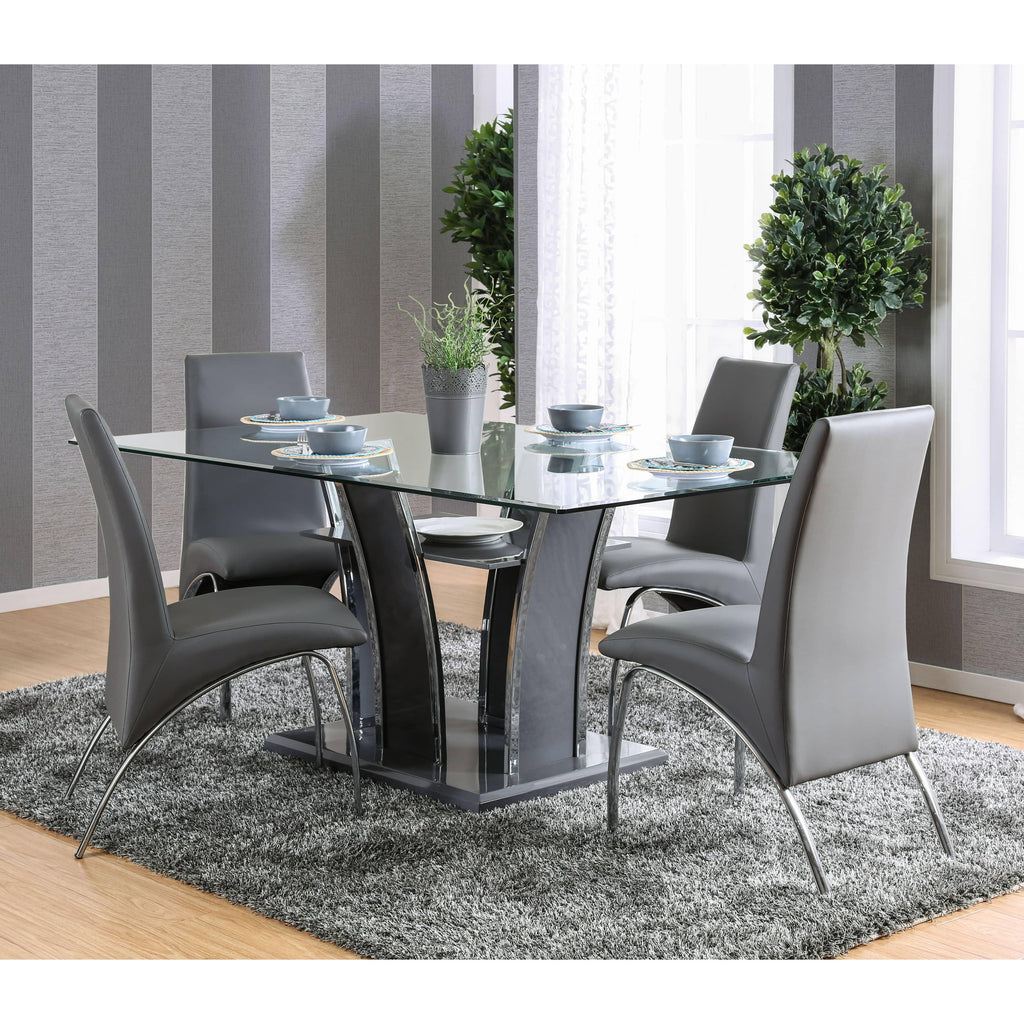 Furniture of America Glenview Dining Table with Glass Top and Pedestal Base CM8372BK-T-TABLE