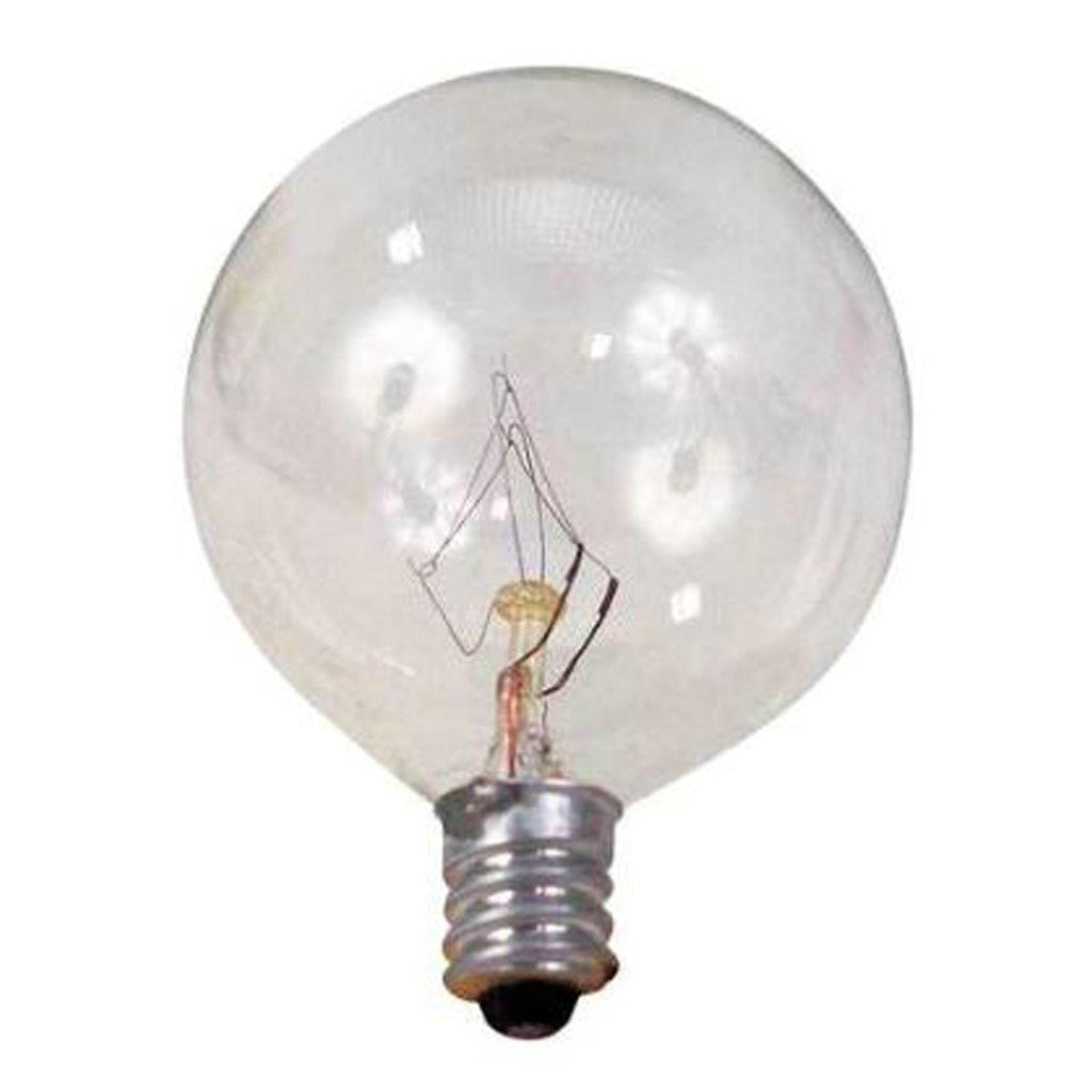 • Specs: Candelabra Base, 25Watt, Clear Bulb, 195 Lumens, such as GE 16.5 shown in product photos