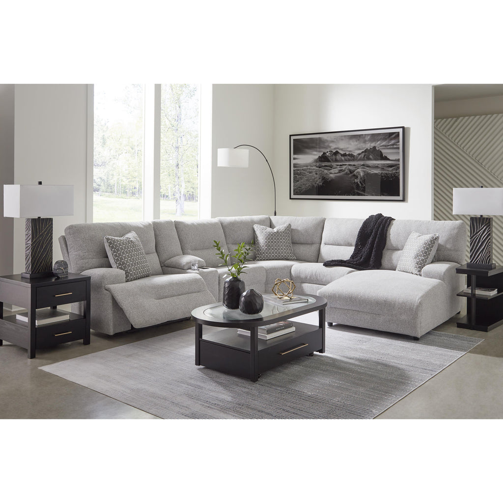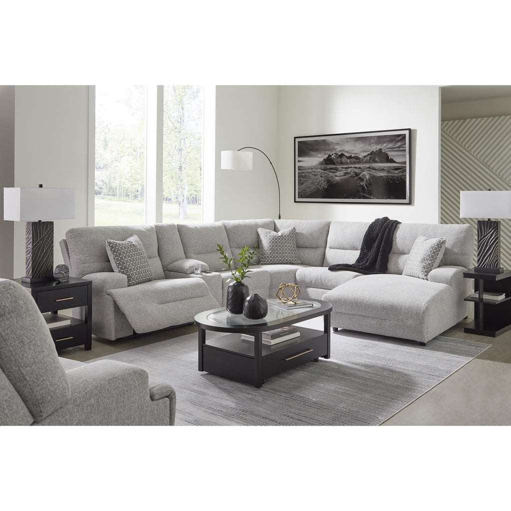 • Includes 6 modular pieces: left-arm facing power recliner, power armless recliner, armless chair, console with storage, wedge and right-arm facing power reclining back chaise