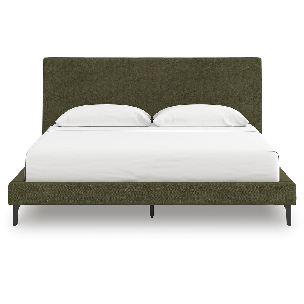 • Assembled king upholstered bed: 84.75"W x 91"D x 46.5"H