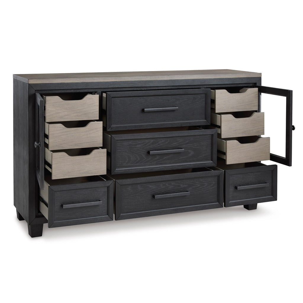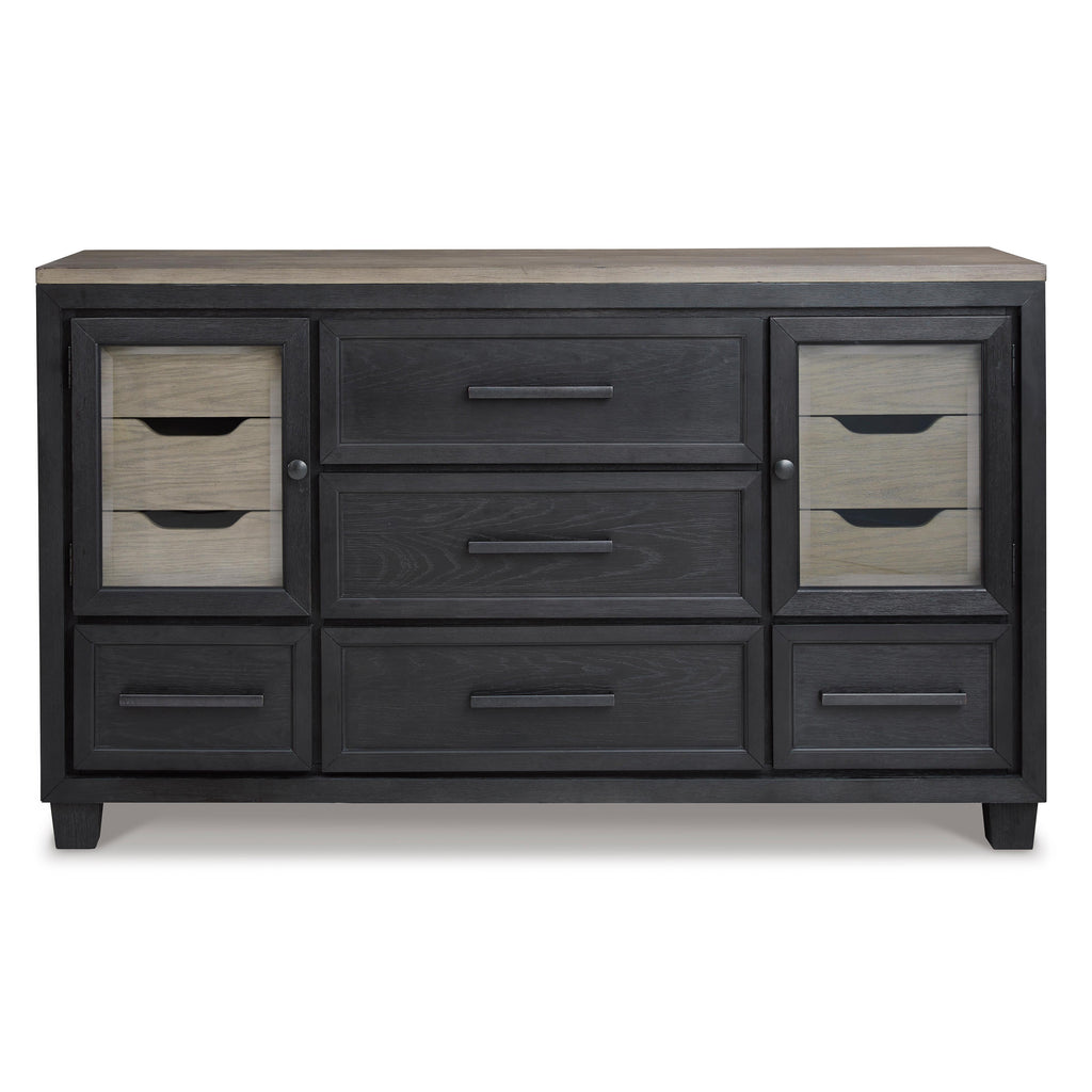 • 5 drawers with brushed black finish; 6 drawers with grayish brown wood tone